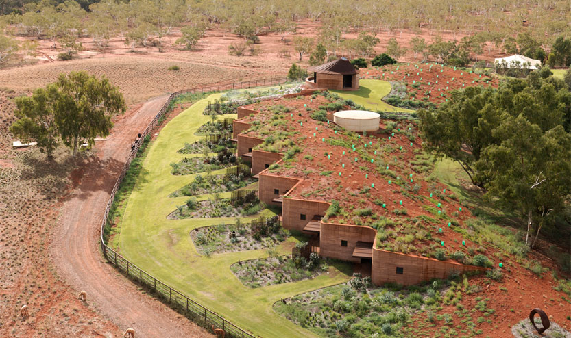 Es el muro de tierra apisonada más largo de Australia probablemente, creado para proporcionar alojamiento temporal para una estación de ganado. Las residencias tienen la mejor masa térmica disponible, por lo que son naturalmente frescas en un clima subtropical. Luigi Rosselli