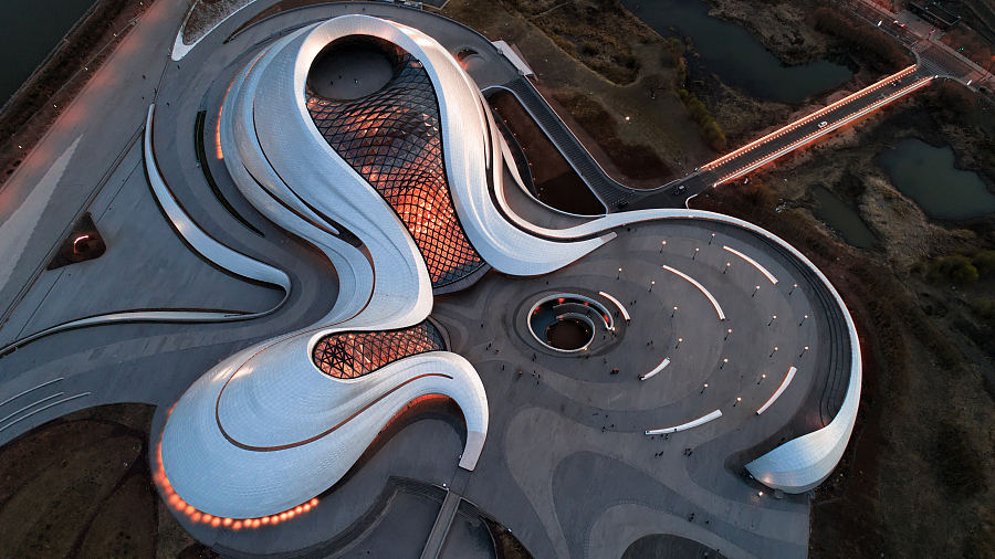 Es un centro de artes escénicas en múltiples lugares en Harbin, provincia de Heilongjiang, China. El edificio parece esculpido por el viento y el agua, combinándose a la perfección con la naturaleza y la topografía. MAD Architects