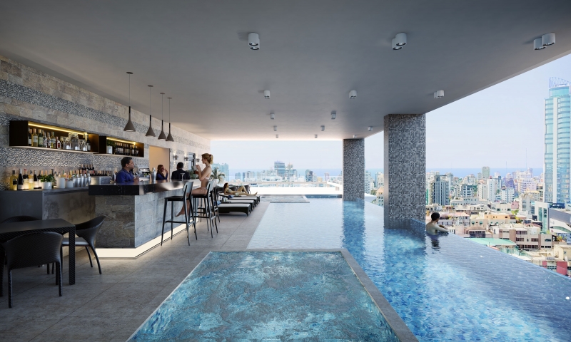 Administración hotelera y entrada circular tipo hotel son dos de las características que destacan los desarrolladores sobre el proyecto que contará con un total de 150 viviendas. La distribución será de 10 departamentos por cada nivel, en una torre con 16 pisos. Eso sin contar los dos pisos superiores destinados a las actividades sociales con su piscina de borde infinito, jacuzzi y sauna.