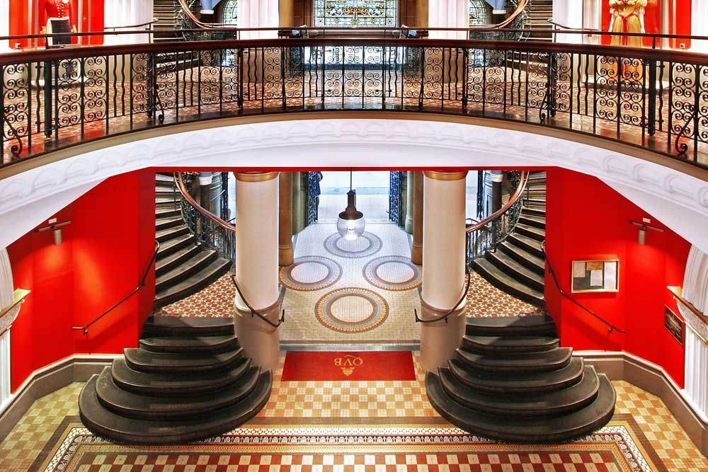 Repleta de elegancia, esta escalera se encuentra en el Sydney’s Grand Queen Victoria Building. Este edificio, ahora conocido como la QVB, fue diseñado por George McRae y completado en 1898, sustituyendo al original mercado de Sydney en el sitio.