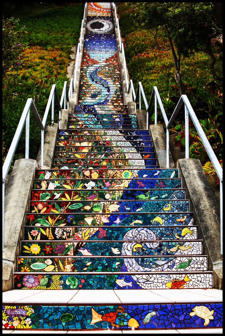 Es nada más ni nada menos que la escalera más larga revestida de mosaicos de los Estados Unidos. Su nombre original es 16th Avenue Tiled Steps, y está conformada por más de 2000 mosaicos de azulejo y 75 mil fragmentos de espejos y vidrios.