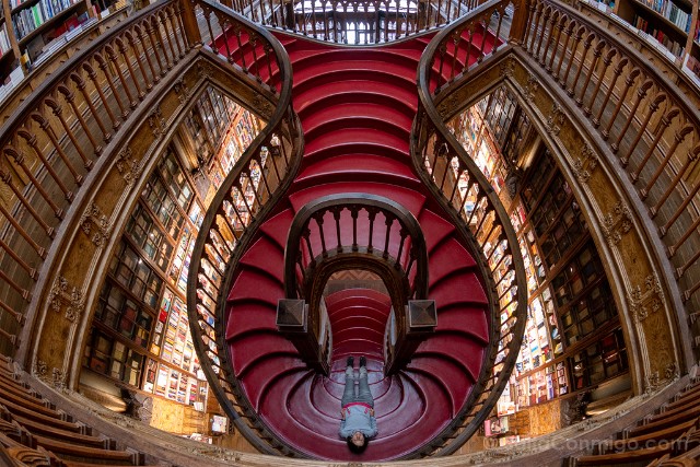 Una llamativa y original escalera que se encuentra en el interior de la Librería Lello, en la ciudad de Oporto. Es allí donde podrás ascender o descender por estos peldaños color rubí. Un detalle curioso: allí se rodaron las escenas de la biblioteca de las películas de Harry Potter.