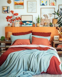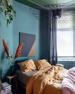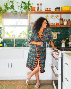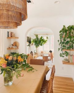 Justina Blakeney  como la encontramos en instagram ha comentado que su residencia la ha convertido en el mejor escaparate de su estilo bohemio y maximalista, con estampados y colores combinados sin miedo y multitud de plantas en cada rincón. Blakeney enseña a menudo sus creaciones en @justinablakey diseñado alfombras, cojines, papeles pintados para decorar las paredes e incluso artículos de papelería, que mezcla en su casa con piezas de Ikea y Target o textiles de segunda mano que encuentra en eBay.