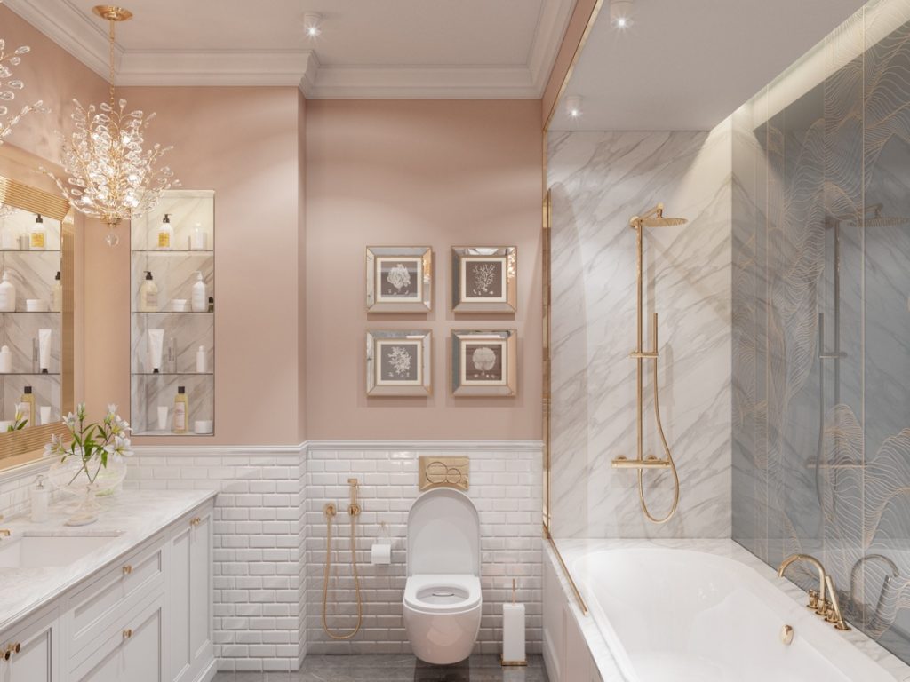 Un baño de rosa: Este color, con un tono suave, y combinado con el inevitable blanco que encontramos siempre en cualquier baño, es el color ideal para diluir un poco el blanco que lo inunda todo. El rosa brinda frescura y una sensación de pulcritud justamente al lugar que más usamos para asearnos.