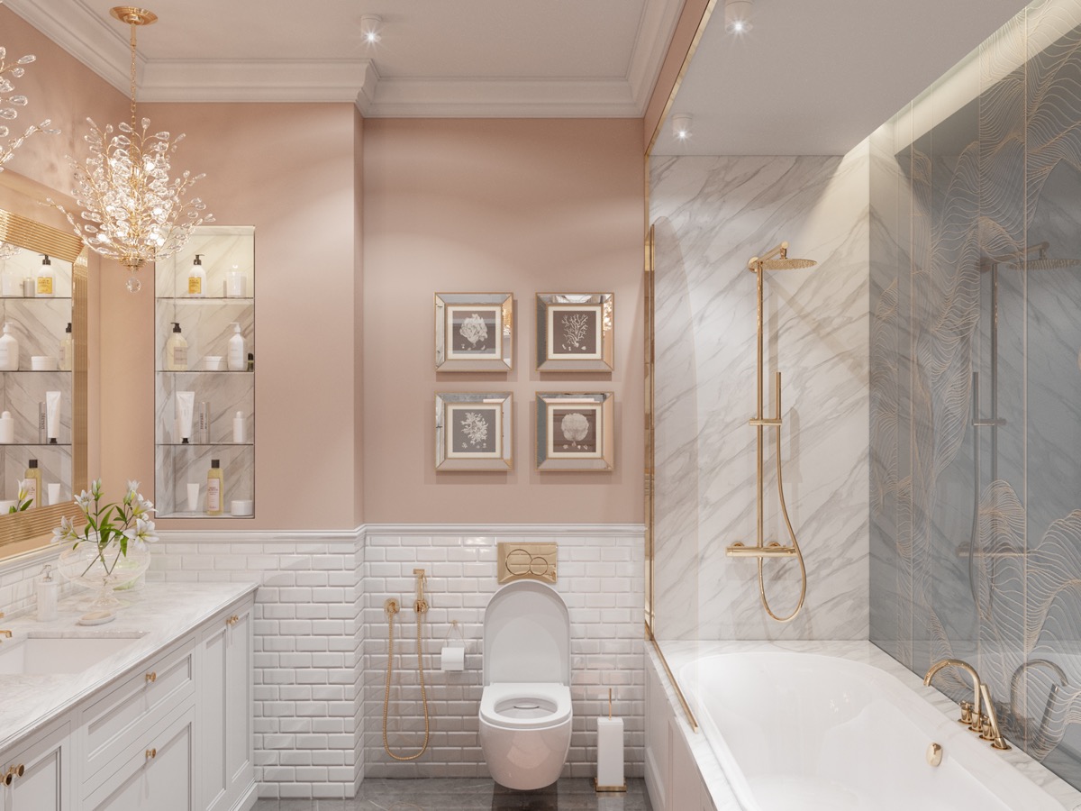 Un baño de rosa: Este color, con un tono suave, y combinado con el inevitable blanco que encontramos siempre en cualquier baño, es el color ideal para diluir un poco el blanco que lo inunda todo. El rosa brinda frescura y una sensación de pulcritud justamente al lugar que más usamos para asearnos.