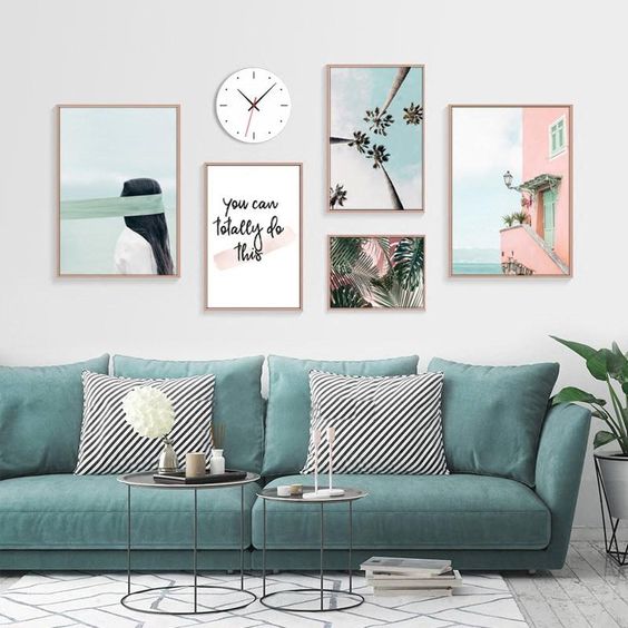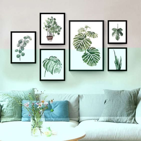 Es el recurso más usado cuando nos plantamos frente a una pared en blanco. Colgar cuadros o espejos es además súper entretenido. Decorar una pared con espejos, además tienen la capacidad de multiplicar la luz que recibe una habitación. Busca colores que mantengan la coherencia cromática con el resto de elementos (muebles, textiles, adornos, etc) de la estancia.