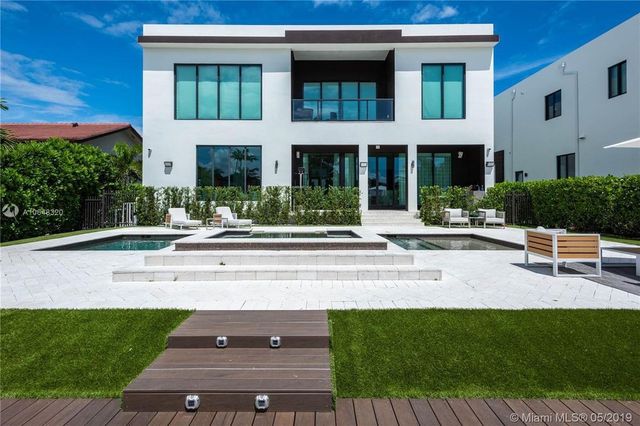 Construida en 2014, la elegante estructura cuenta con interiores totalmente renovados, ventanas eléctricas y sistemas inteligentes de sonido e iluminación para el hogar. También incluye patios, una piscina y un muelle. Mide 5,022 pies cuadrados, que incluyen seis dormitorios y 6.5 baños. La sala de estar y el comedor están adyacentes a la cocina con barra de descanso. Una lámpara de araña dramática encabeza la mesa del comedor, y una similar cuelga sobre las escaleras.