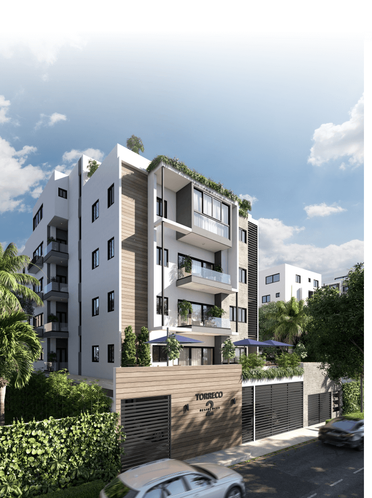 Torreco Residences es un residencial de baja densidad en el sector Mirador Norte, con un edificio de 5 niveles y 12 unidades residenciales, también cuenta con un estilo arquitectónico llamativo y de buenas proporciones.