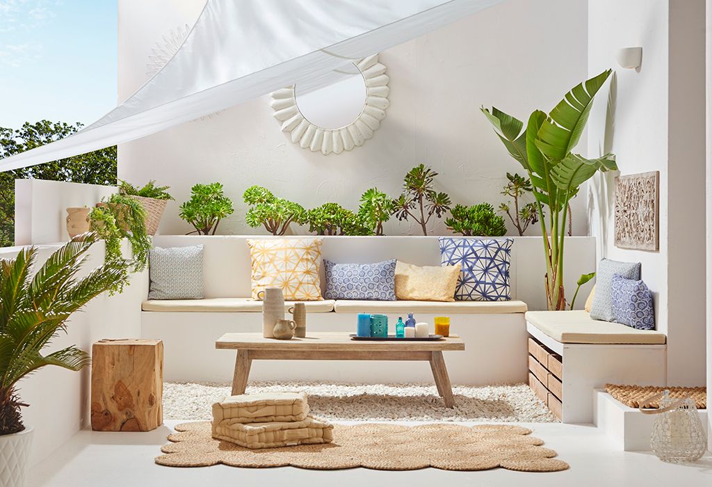 4- Te sugerimos que elijas elementos que te resulten cómodos al utilizarlos al aire libre, con colores que te identifiquen tu estilo y materiales que resistan los cambios de clima del exterior. Puedes usar cojines de distintos tamaños, alfombras, mantas, sillones cómodos en postura y texturas.